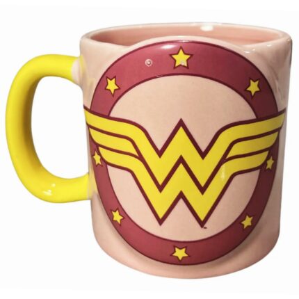 Material: Cerámica. Personaje de DC: Mujer Maravilla. Tipo: Taza tridimensional. Medidas: Alto: 8cm Ancho con asa:14.5cm. Cantidad: 400ml.